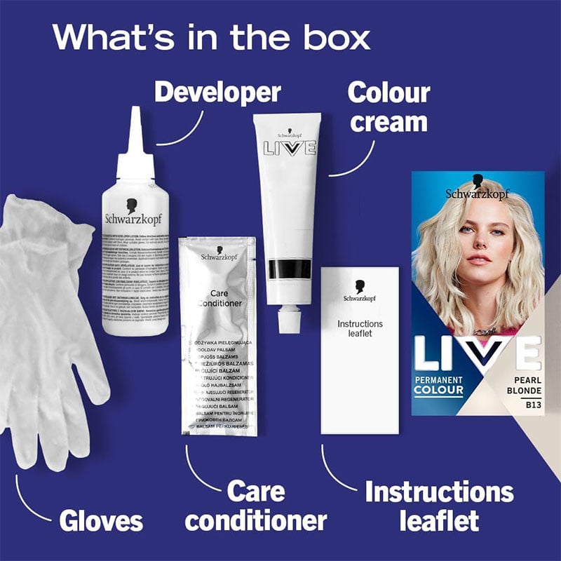- LIVE blonde hair dye offers pearly, pure blonde with striking shine. The anti-breakage formula is enriched with caring oil and keratin