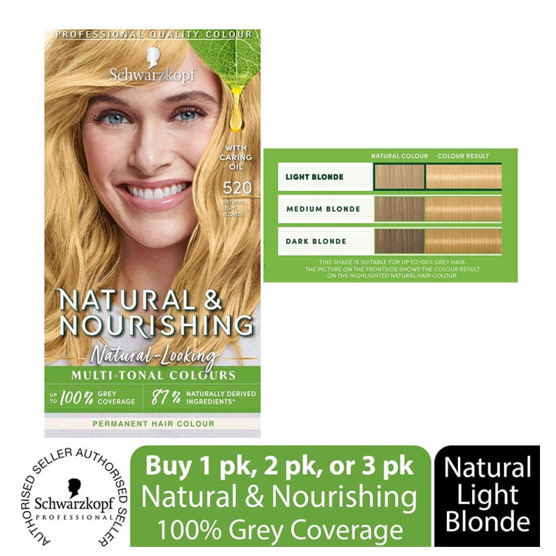 - Natural & Nourishing Natural Light Blonde 520 is a permanent hair colour for nourished multi-tonal & natural-looking results with up to 100% grey coverage.