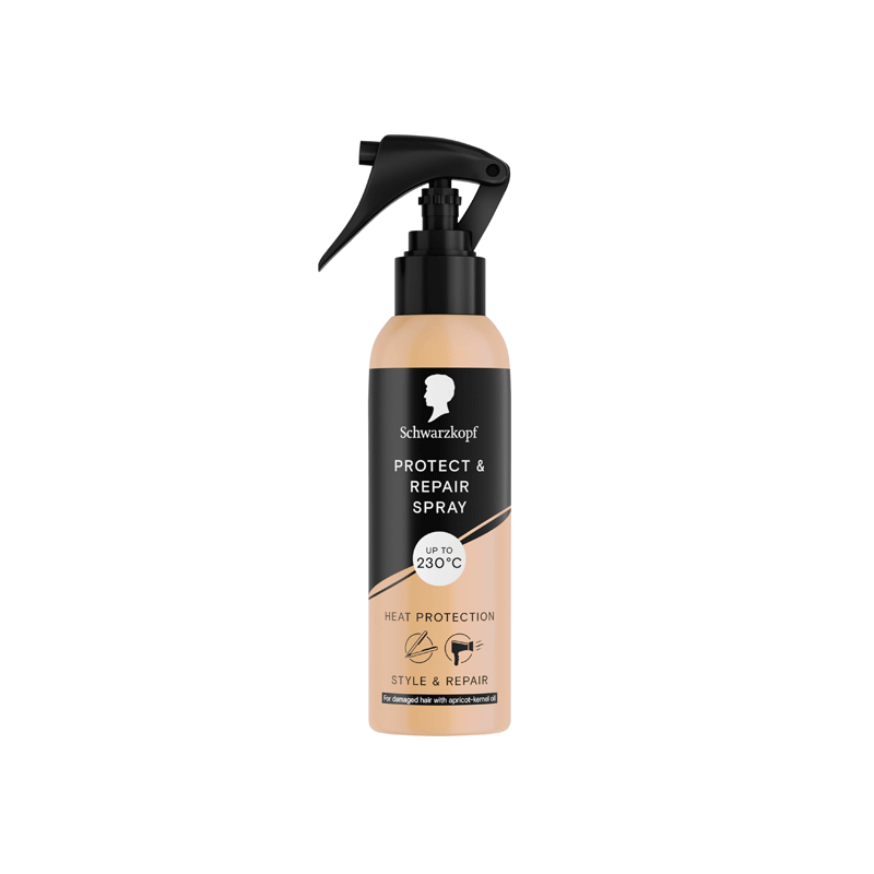 - Schwarzkopf protect & repair spray: This multi-tasking spay combines hair styling & repair with Schwarzkopf technology. This heat protector spray is suitable for long hair.