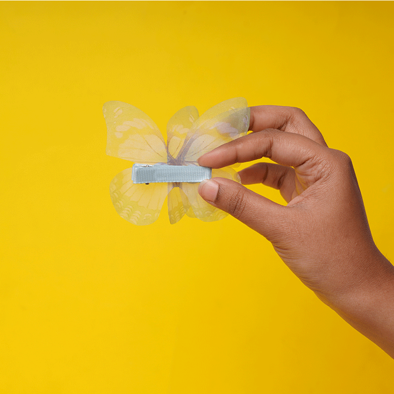 - A lightweight, semi-transparent hair clip shaped like a butterfly, featuring delicate net-like detailing for a whimsical, elegant look.