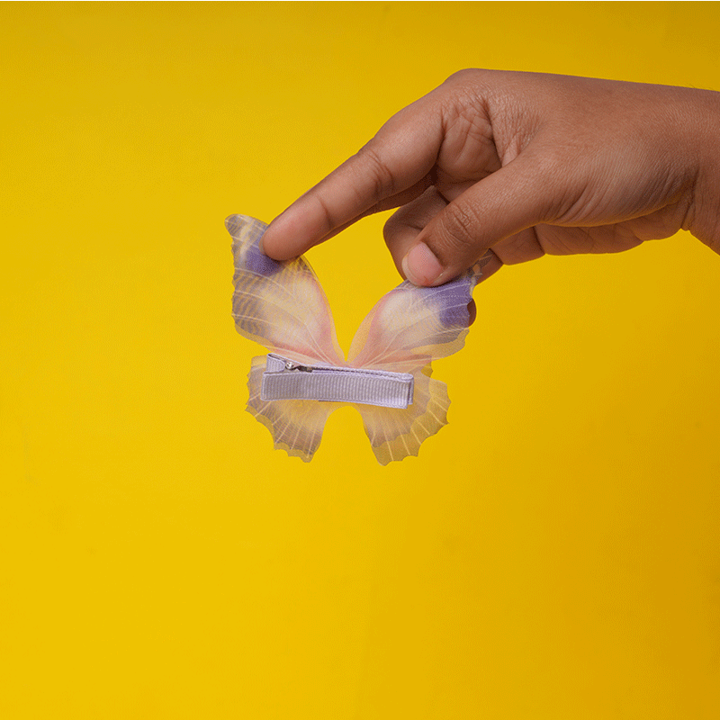 - A lightweight, semi-transparent hair clip shaped like a butterfly, featuring delicate net-like detailing for a whimsical, elegant look.