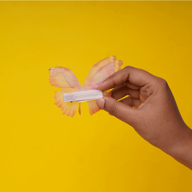 - A lightweight, semi-transparent hair clip shaped like a butterfly, featuring delicate net-like detailing for a whimsical, elegant look.