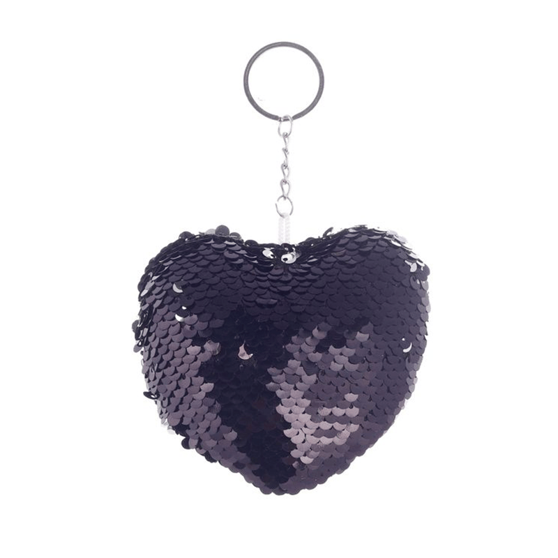 - The Sequin Soft Heart Key Ring is a glam and tactile accessory designed to add a splash of sparkle and texture to your everyday items.