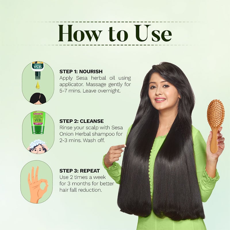 Sesa Anti-Hair Fall shampoo is a medicinal shampoo crafted with Bhringraj, Onion and 6 Ayurvedic Herbs that helps to reduce hair fall, prevents split ends and improves hair’s shine and softness.