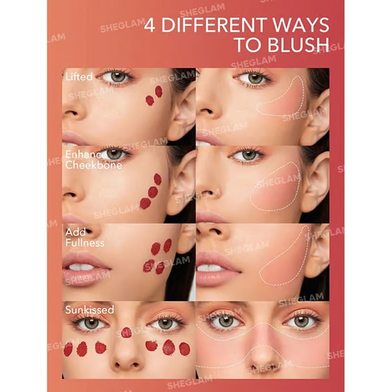 2. Using the sponge tip applicator, apply 1-2 dots of Sheglam Color Bloom Liquid Blush to each cheek.