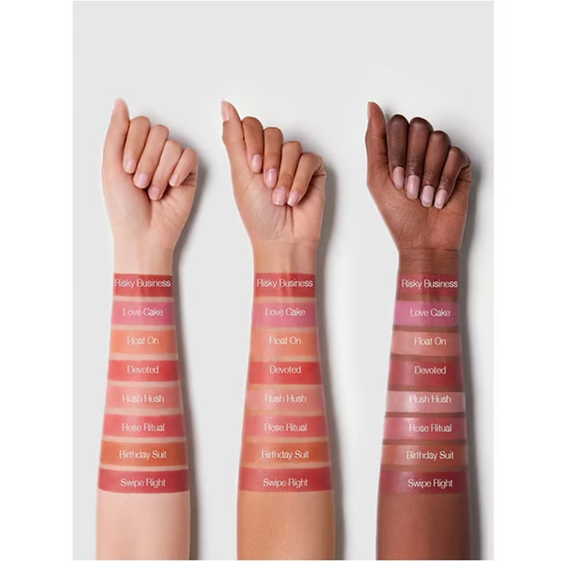 3. Using your fingers, a makeup blending sponge or a blush brush, lightly pat the liquid blush so that it melts into the skin for a smooth, second-skin finish.