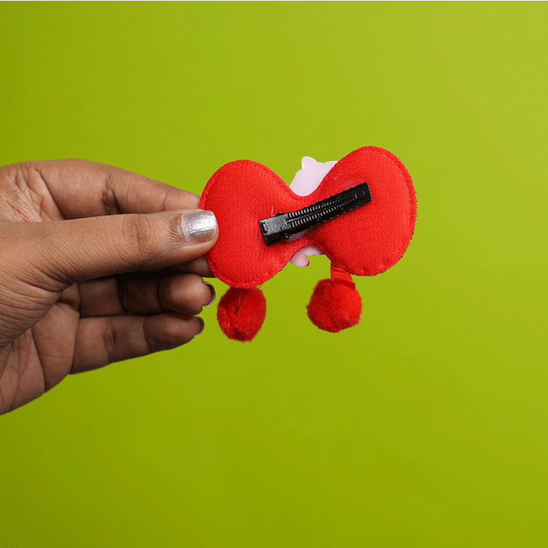 - Featuring a charming bow design accented with sparkling stones and a soft pompom center, this hair clip blends fun and fashion effortlessly.