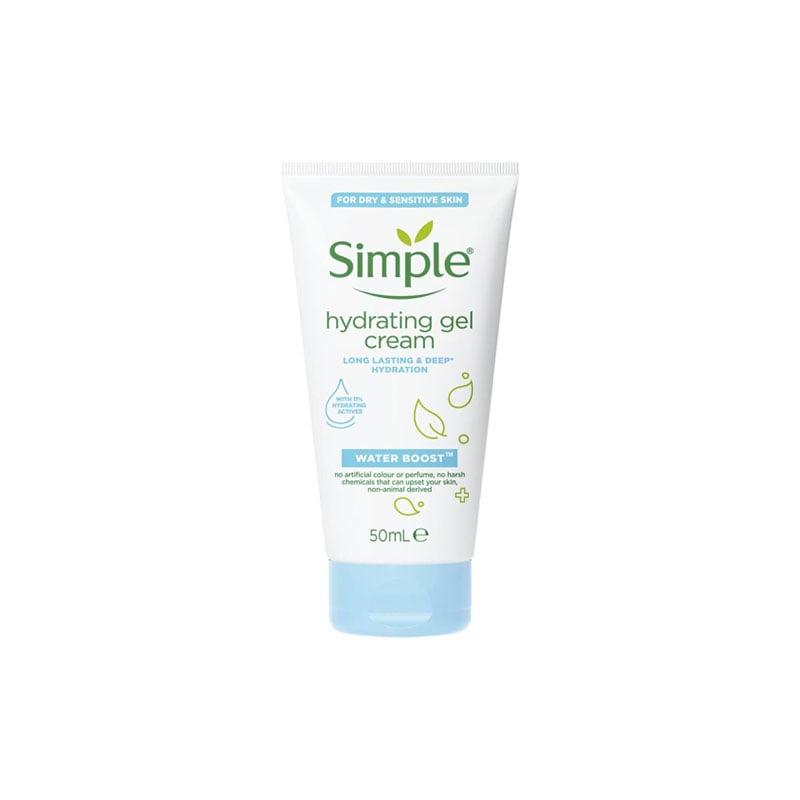 - Simple Water Boost Hydrating Gel Cream restores hydration to dehydrated skin, leaving it feeling refreshed, supple and comfortable.