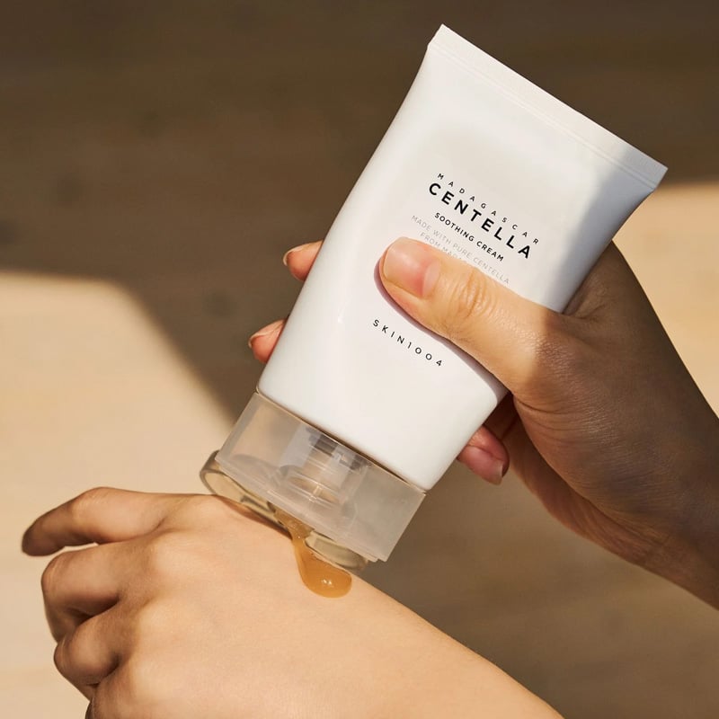 - Spread the soothing cream on the skin then spread the Centella cream.