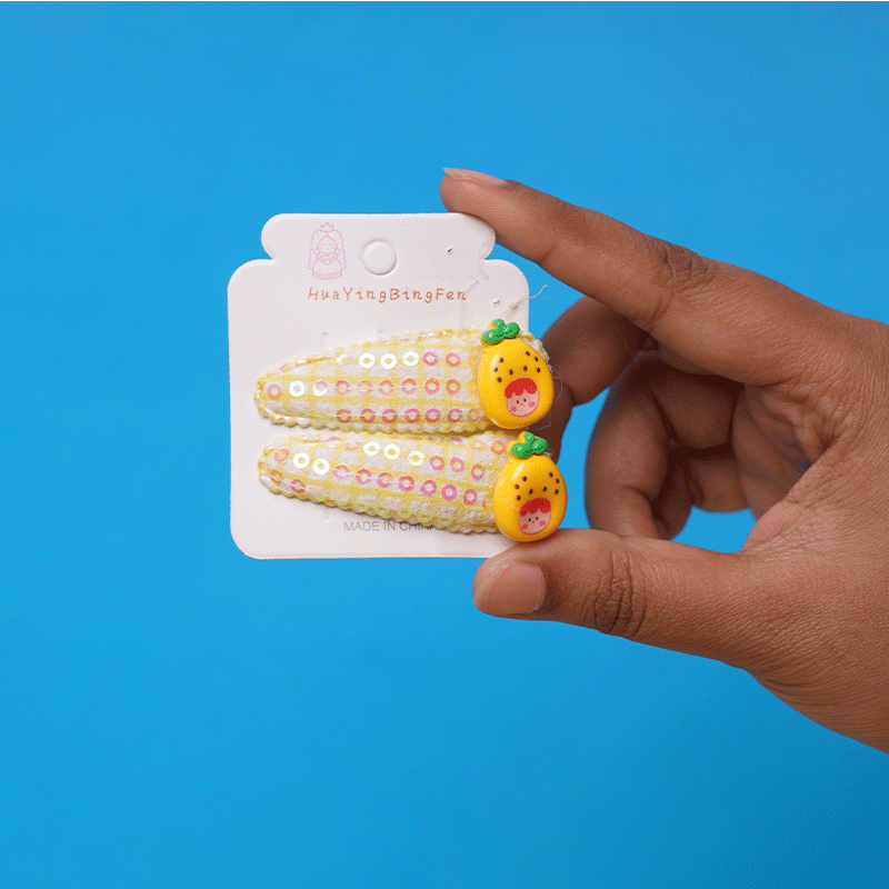 Soft Hair Clip With Cuty Frutty 1 Pair - Yellow
