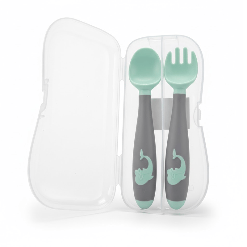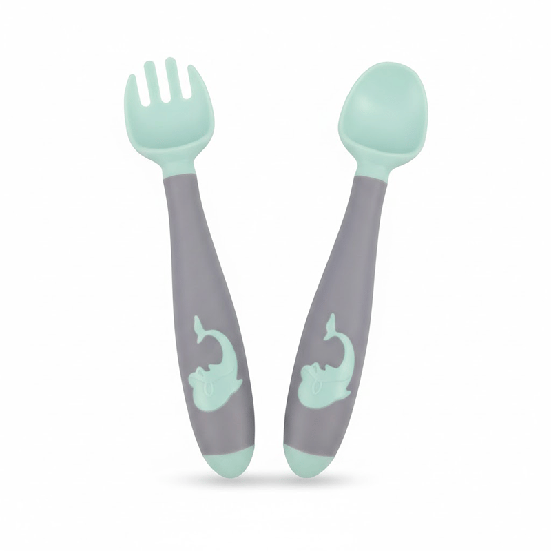 - Features a soft Pistachio and grey color palette with adorable dolphin motifs on the handles for easy gripping.