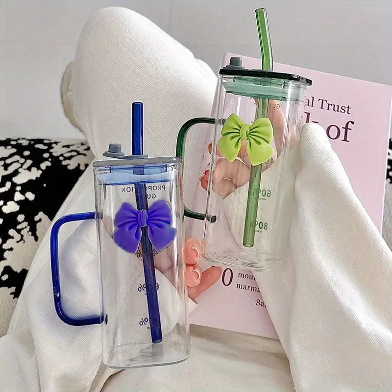 - Glass Mug, Glass tumbler is suitable for different beverage, coffee, tea, iced tea, milk, juice, etc. Also can be used as water drinking bottle, the glass cups with lids is convenient to drink.