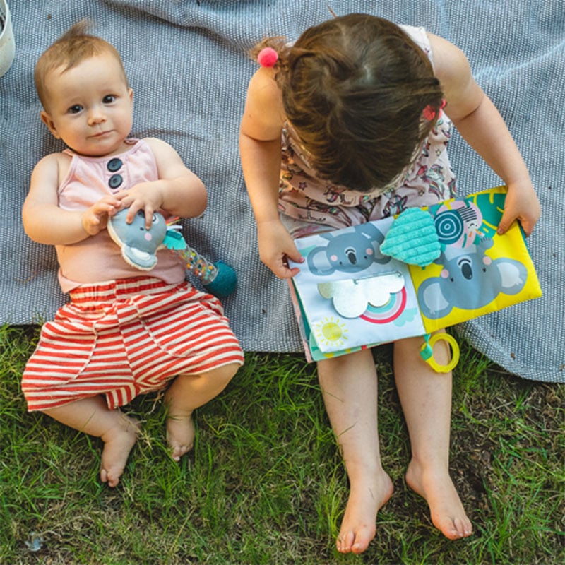 - A crinkle double sided Soft book that engages baby and encourages growth and development in a fun exciting way for little adventures!