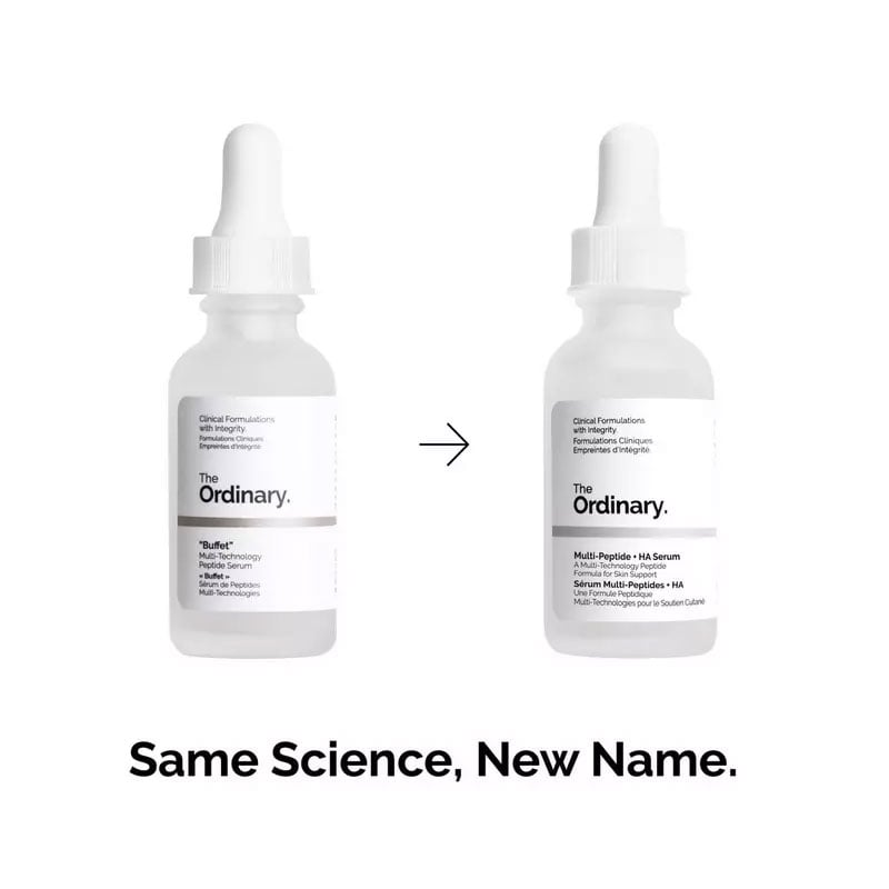- Multi-Peptide + HA Serum (formerly known as “Buffet”) is a universal formula that combines a comprehensive array of technologies to improve skin smoothness and target multiple signs of aging at once.