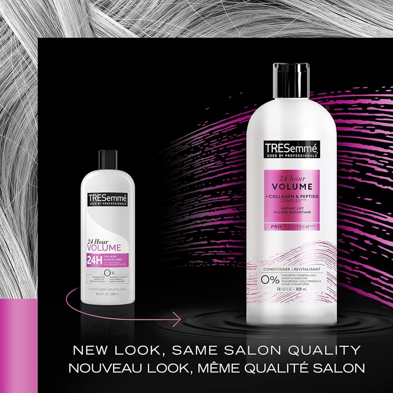 - TRESemmé 24-Hour Volume Conditioner for fine hair, delivering all-day body and bounce that’s manageable and never weighed down.