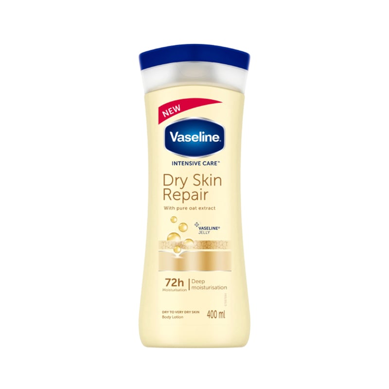 - This body lotion contains micro-droplets of Vaseline petroleum jelly to lock in moisture.