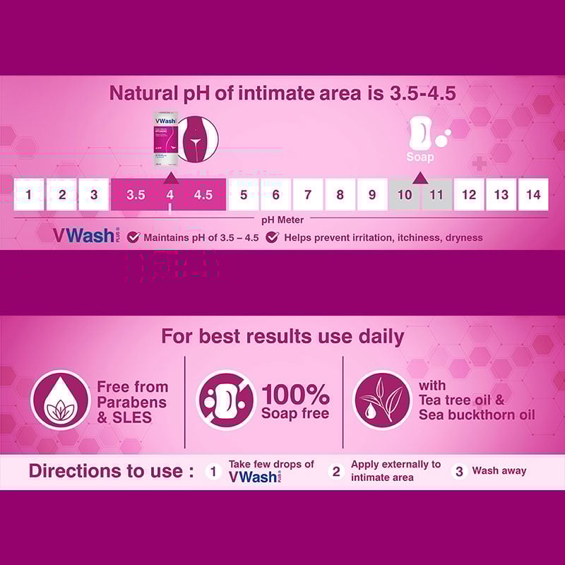 - With a pH level of 3.5, VWash helps restore and maintain the natural acidity of the intimate area, which is essential for preventing irritation and discomfort.