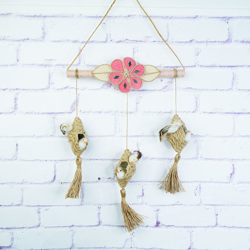 - A Wall Hanging Hand Craft Jute Nest is a decorative item made from woven jute, designed to resemble a bird's nest.