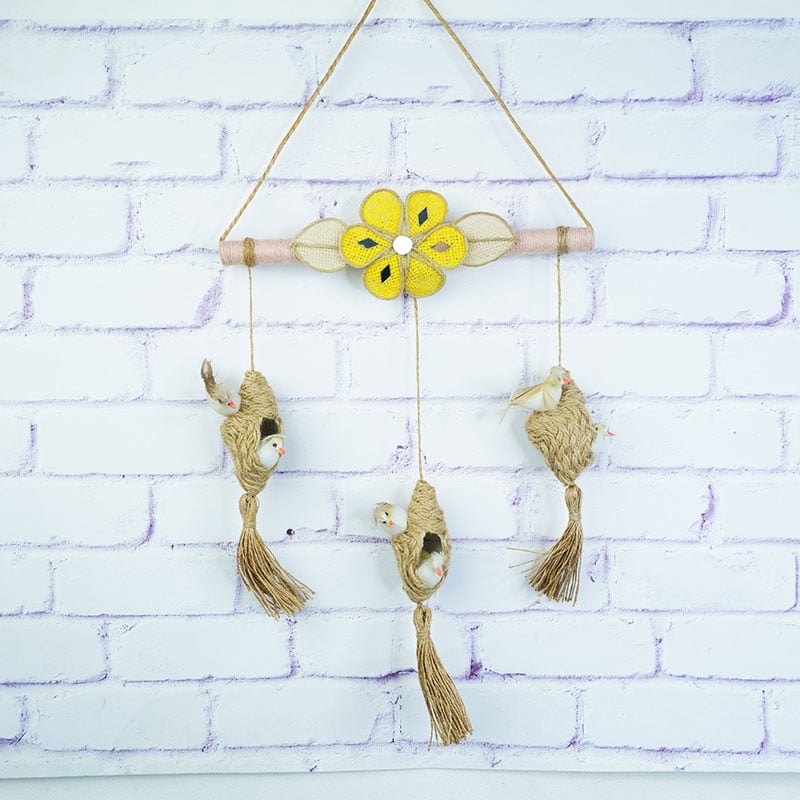- A Wall Hanging Hand Craft Jute Nest is a decorative item made from woven jute, designed to resemble a bird's nest.
