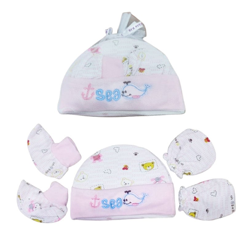 Whiz Kid Cap Hand Gloves Socks Set - Baby Pink