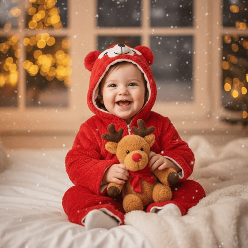 Winter Teddy Romper For Baby - Red Medium