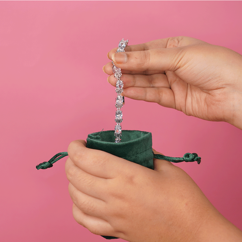 Women High Quality AD Stone Bracelet With Pouch - 001