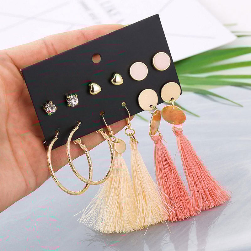 Women's Combination Tassel Earrings Set - 6 Pairs (65)