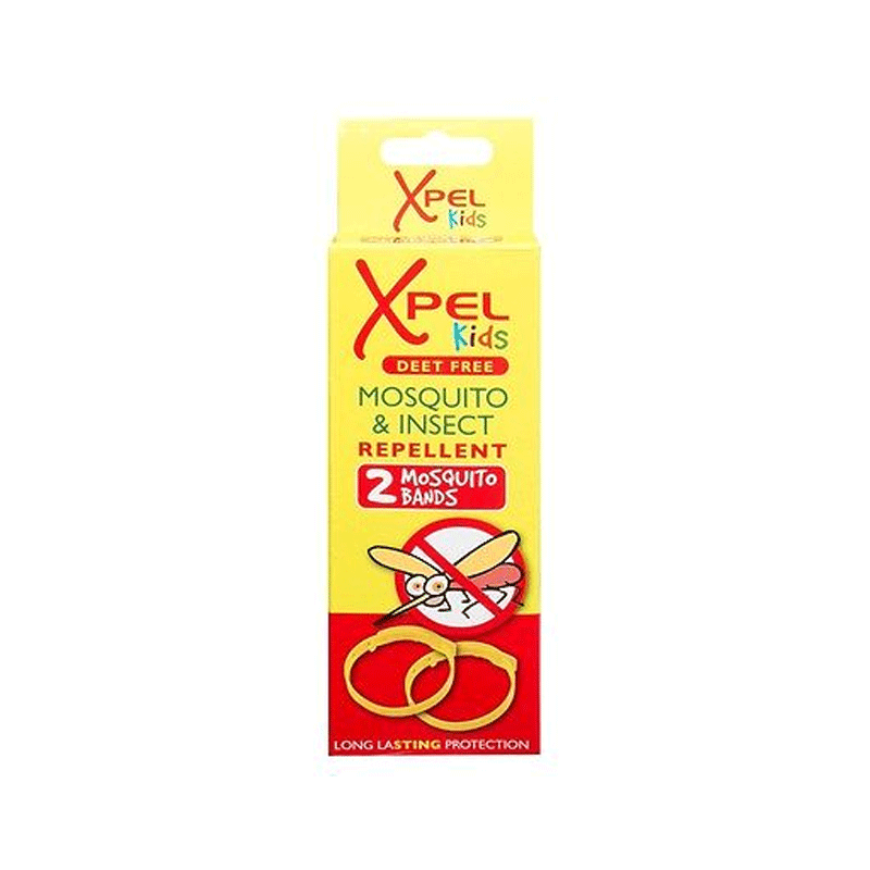 - Xpel Kids Mosquito Repellent twin band set, safe to use on children over 6 months old, individually sealed with up to 120 hours protection per band.