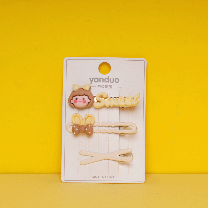 Yanduo Baby Hair Clip 3pcs Set - Cream
